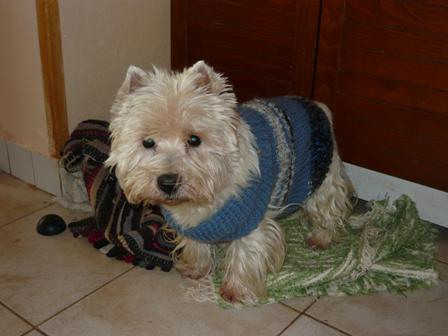 Dalším členem naší psí smečky ja Keníkův syn Dexík - vlastním jménem Ycker ze Svésedlic. Letošní rok už oslaví své 10 narozeniny. Je nejmenší westík z naší smečky a asi největší terier. Má několik jedinečných vlastností, které jsem zatím u žádného ze svých psů nezaznamenala. Hlavně dává úplatky!! Skutečně, když něco chce, jako třeba pomazlit, popadne první co má po tlamičce, třeba ponožku, a s velikým vrtěním ocásku ji přinese, hlavně aby si ho někdo všiml. Když jsem si ho jako malinkého vybírala ze 4 štěňátek, běhal, šmejdil po dvoře, jako bych tam nebyla. Potom konečně v rohu dvoře našel konečně to, co hledal -jeho první úplatek v životě! Mrtvého vrabce, kterého mi s velikým vrtěním ocásku donesl. Měl ten prcek co dělat, aby ho ten vrabec nepřevrátil, ale splnil účel. Pejsek si okamžitě získal moje srdce. A od té doby mu úplatkářství zůstalo. Jedinečné je i jeho vrtění ocáskem, umí nejenom sem a tam, ale i dokolečka na obě strany. Je nejlepším lovcem myší, ale tedď se se všeho nejraději kouká na televizi. Nejraději má filmy o zvířatech.