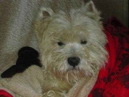 Bagheera - vlastním jménem Bagheera Twilight Pathfinder, je nejmladší člen naší psí westí smečky a jednoho jihoruského ovčáka. Narodil se v roce 2003 a jeho otcem byl anglický pes Aros Ashgate. Byl u chovatelky v Budapešti a tak jsme s naši fenečkou Terynkou jeli na krytí za vybraným fešným ženichem. Zrovna to vyšlo na velikonoční pondělí. Když jsem v podvečer jeli domů, tak maďarští celníci oslavovali velikonoce a nebyli schopni rozpoznat psa od balíku novin. Ale vše dopadlo dobře, skoro. Páník od Terynky si chtěl nechat fenečku, ale narodil se pouze jeden pejsek, Bagheera. Jeho život ale s ním měl jiné plány V pěti měsících najednou začal malý Bagy zvracet. Zpočátku to vypadalo jako klasická dietní chyba, nasadila se dieta, ale nic se nezlepšovalo. Veterináři usoudili, že něco spolkl, rtg to nevyloučil, tak se operovalo. I po operaci se stav stále zhoršoval, dvakrát denně jsme jezdili na kapačky, ale Bagy se nám ztrácel před očima. Po večerní kapačce, kdy už jsem domů vezli skoro bezvládné tělíčko, jsme ještě týž večer volali do Brna na kliniku a ještě v noci jsme ho tam odvezli. Zůstal na klinice. Byla to pro nás nejdelší noc. Ráno jsme na kliniku volali s přesvedčením, že osud malého Bagyho rozhodl, ale vyhrál. Ještě v noci se jim podařilo zastavit zvracení, určili dïagnozu, která zněla akutní zánět slinivky břišní, a zahájili léčbu. Za čtyři dny jsme si pro malého Baldachýnka, jak mu říkali, mohli přijet. Přivítalo nás nejvychrtlejší stvoření, které jsme snad znala, ale byl veselý a spěchal s námi domů. Čekala nás spolu ještě spoustu radostí a lotrovin, které snad provádí do dneška, i jako dospělý pes. Na výstavy jsme snad chodili spolu jenom proto, abychom si užili spolu legrace a poznali nové pejsky a lidičky. Žádná výstava mu nemohla dát nejlepší ocenění, neboť jeho největší top výhra byla, že vyhrál vlastní život. Teď si žije veselý život s ostatními pejsky kamarády westíky s Keníkem, Terynkou, Dexíkem, Majdou, Jackem a maxipsem Fíkem.