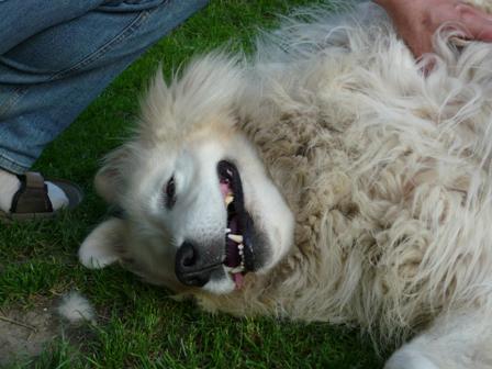 A nad tím vším a i nad námi bdí okem bdělým 60 kilový jihoruský ovčák maxipes Fík - vlastním jménem Tristan Kontrast Kolor. Oslaví spolu s Dexíkem již své 10 narozeniny. Je to úžasné zvíře, a kdo někdy poznal plemeno jihoruský ovčák, určitě mu propadne jako my. Jak se o nich píše "nejostřejší z nejkrásnějších a nejkrásnější z nejostřejších". Miluje nás všechny srdcem tak velikým, které snad nemůže být už větší. Aby nás uchránil před vším zlem, je ochoten za nás i život položit. Na dvoře i na zahradě je klid a pořádek. Vzhledem sice nevypadá jako pravý jihoruský ovčák, má exportní rodokmen, ale udělala na nás podvod chovatelka z Polska, od které jsem ho získala. Jeho matka je kříženec jihoruského ovčáka a podhalaňského ovčáka, ale protože je typická jihoruska, je šampionka Polska, ale u našeho Fíka se teprve vyskytly formy křížení. Ale pro mě nic důležitého, jeho povaha je prostě úžasná. Minulý rok nás málem opustil, ale naštěstí pomoci dobrého veterináře, naší lásky a jeho snahy jsme vyhráli. Utrhl si vazy na krční páteři a vyjely mu dva krční obratle. Hrozilo mu totální ochrnutí, pokud by obratle dokonaly své dílo. 3 měsíce nosil s velikou trpělivostí krční korzet, a dnes je úplně v pořádku. Dokonce prohání i kočky. Je to náš Maxipes Fíček.